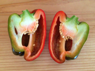 芸術的なピーマン発見!!(@_@;)絵具で塗ったような色です(汗