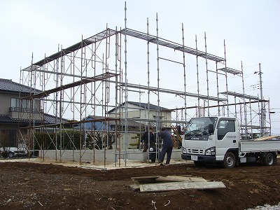 足場を組んで 上棟開始します(^◇^)